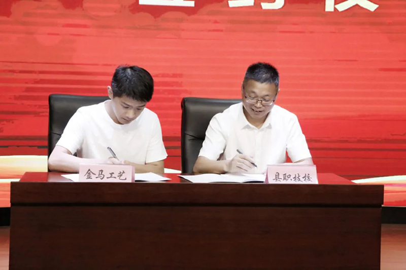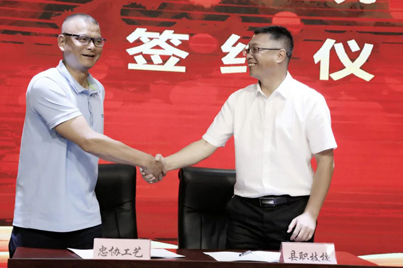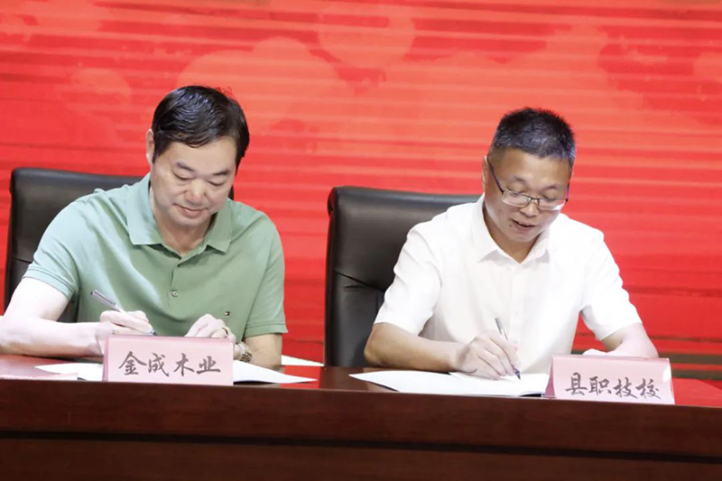 云和職技校黨總支書記、校長(zhǎng)陳偉華與浙江新云木業(yè)集團(tuán)有限公司、云和金成木業(yè)有限公司、浙江忠協(xié)工藝品有限公司、浙江金爾泰玩具有限公司、浙江金馬工藝品有限公司5家企業(yè)代表簽約。